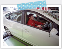 受付でお客様とお車の確認の手続きをした後、メカニックがお車を点検致します。